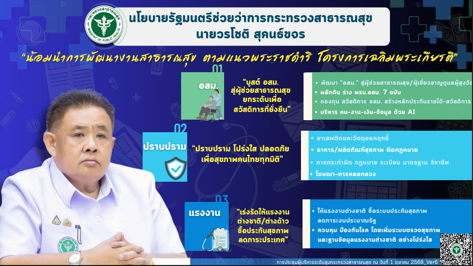 นโยบายรัฐมนตรีช่วยว่าการกระทรวงสาธารณสุข (นายวรโชติ สุคนธ์ขจร)